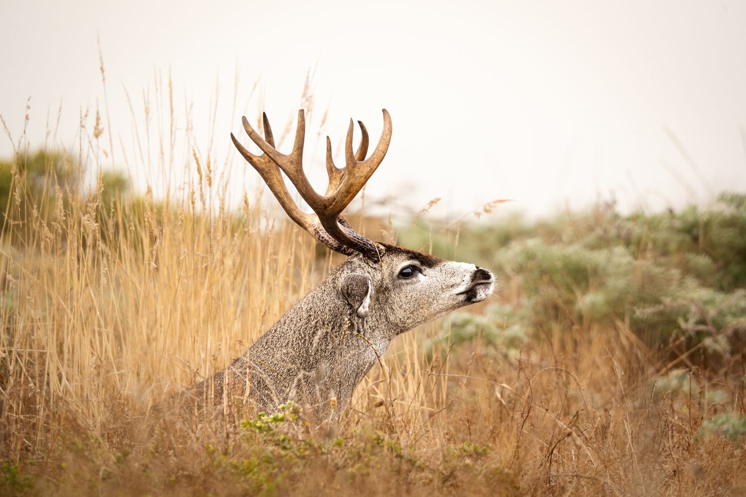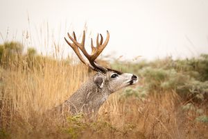 A blacktail buck sniffs the air for does in heat during the rut, Point Reyes, CA.